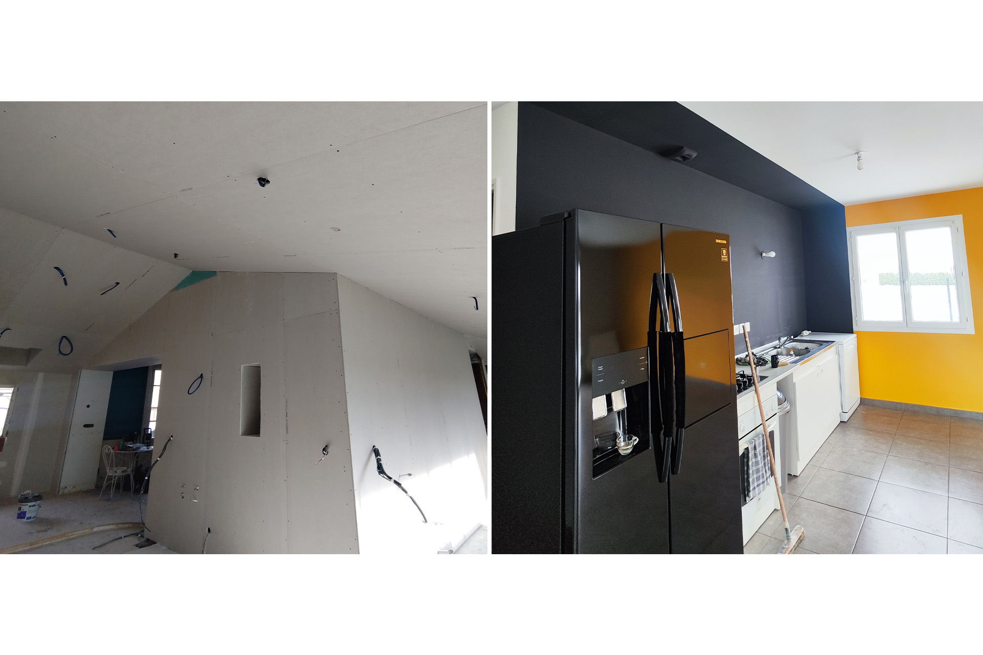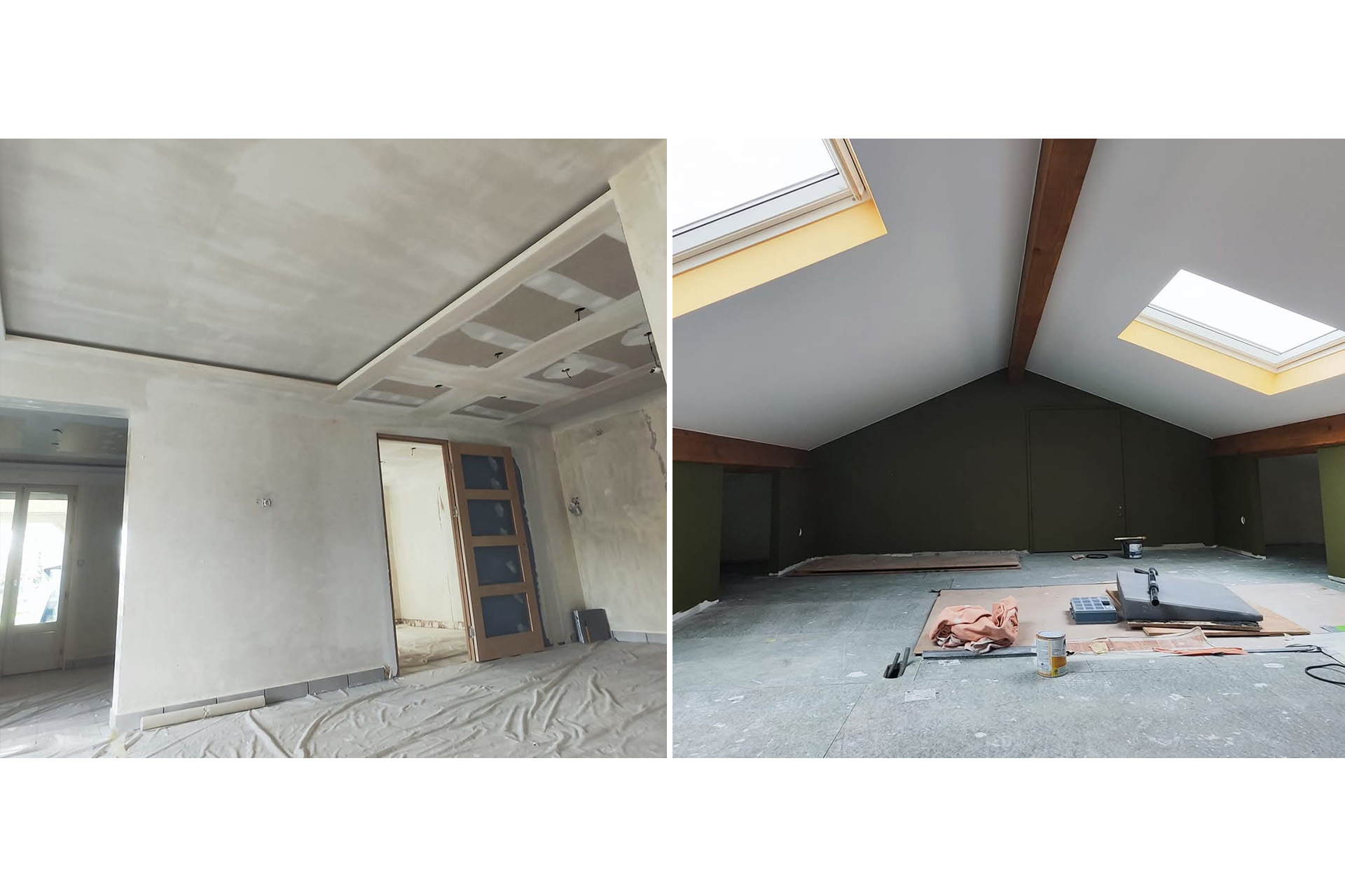 ● Plâtrerie : pose de cloisons, doublages, faux plafonds, enduits et finitions.